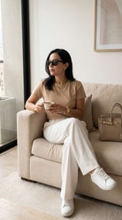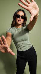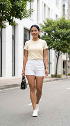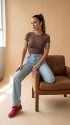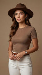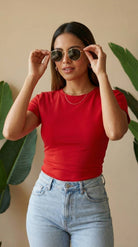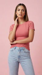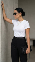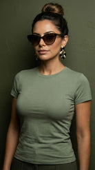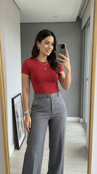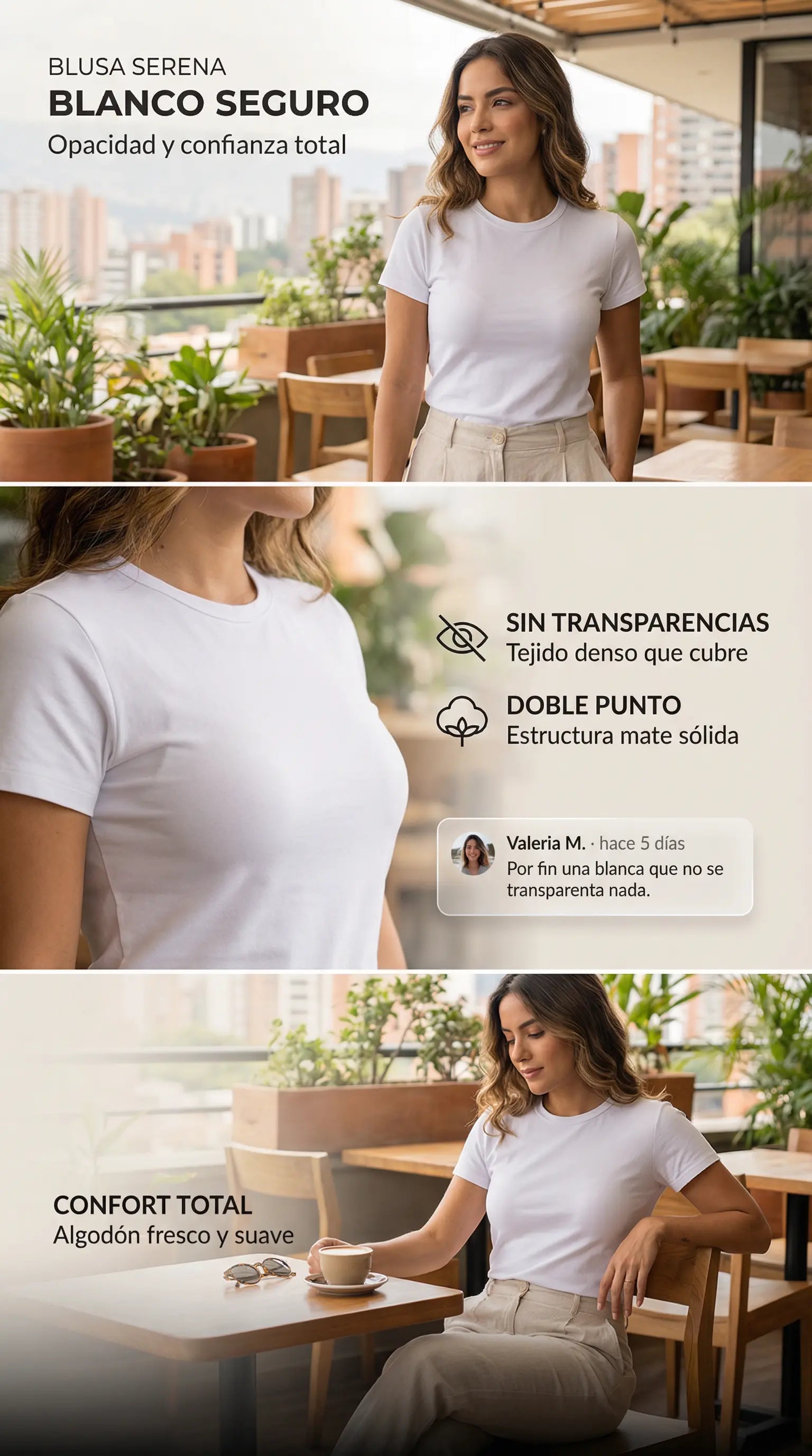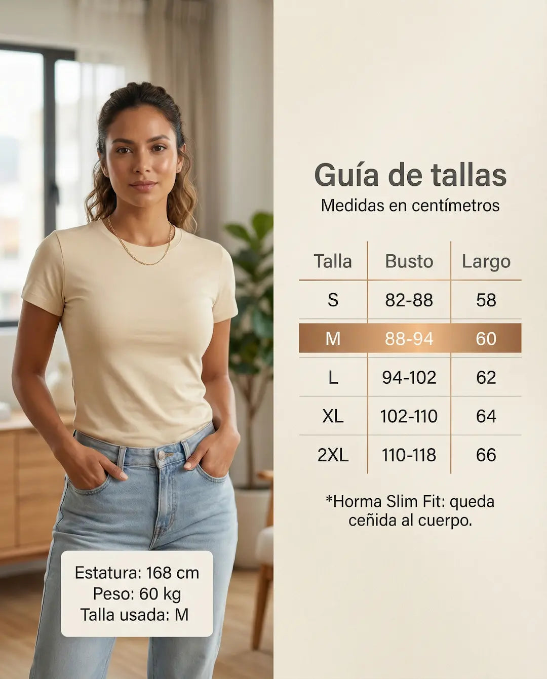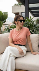 La Blusa t-shirt Serena es ese básico que sí hace la diferencia: slim fit, ceñida al cuerpo y diseñada para marcar la cintura con una caída limpia y pulida. Su tela doble punto con elasticidad se adapta sin sentirse rígida, mientras su baja transparencia te da más tranquilidad, incluso en colores claros. Es versátil, cómoda y se ve bien con todo—de esas prendas que te pones y el outfit ya queda listo.