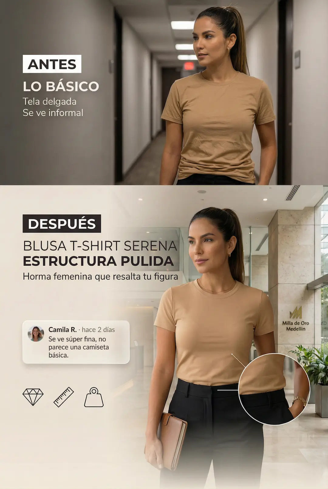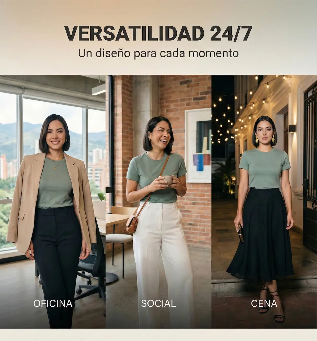 Justamente esa es la idea: es un básico versátil que se ve pulido. Funciona perfecto con jean, pantalón más formal o debajo de blazer—la puedes usar desde el día a día hasta planes más arreglados.