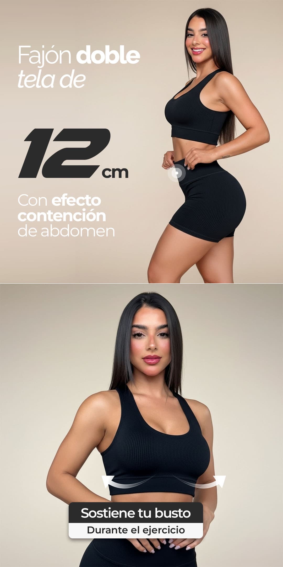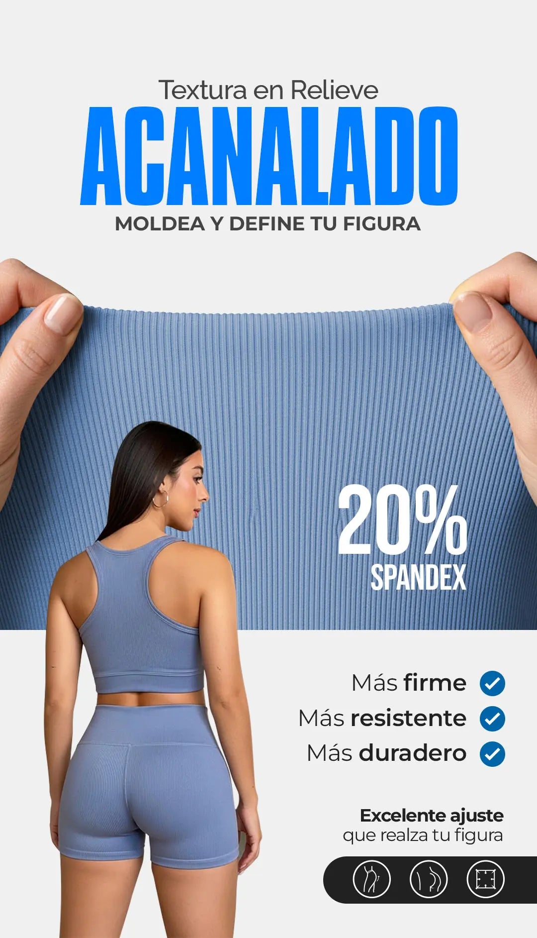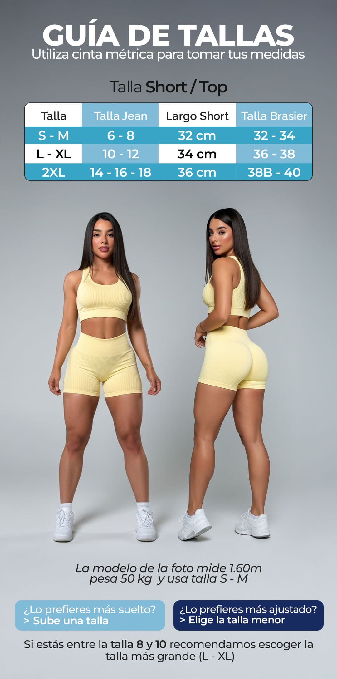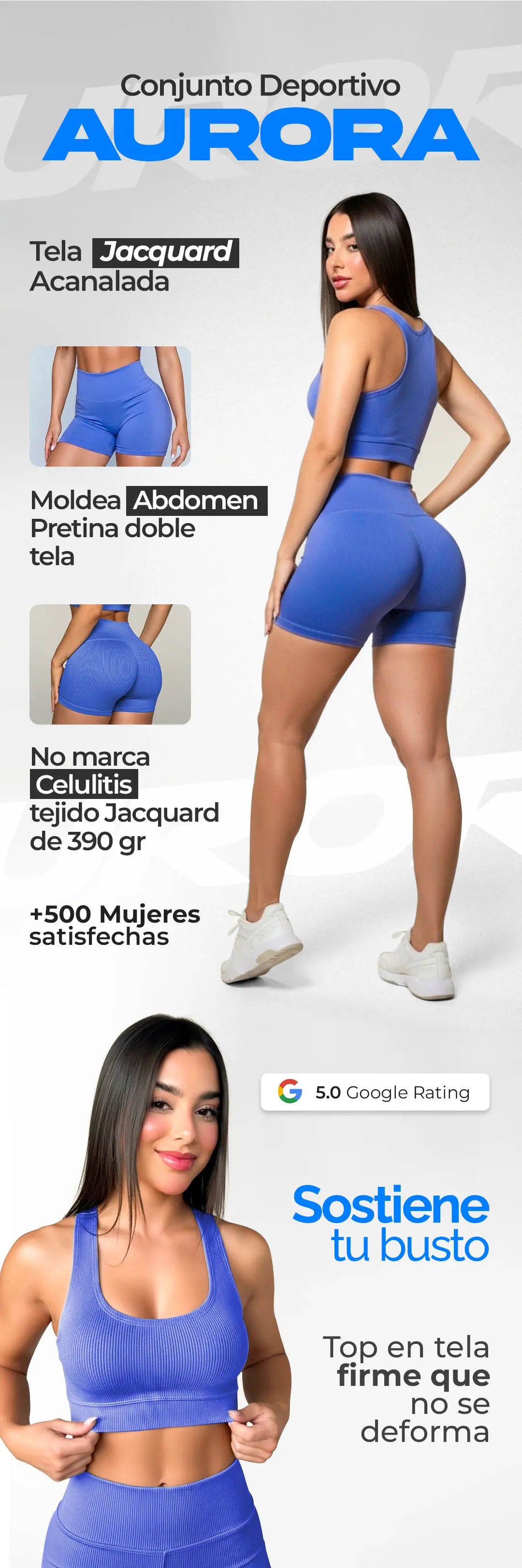 El Set Aurora es la pieza minimalista, estructurada y moderna que tu rutina exige. Confeccionado en Jacquard DP de 390g , el set ofrece una compresión media-alta que moldea y define la figura con precisión. Su top de escote cuadrado brinda soporte firme, y el short de tiro alto con pretina ancha asegura máxima estabilidad. Es tu esencial para el gimnasio, yoga o athleisure.