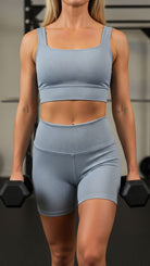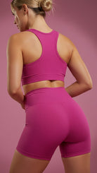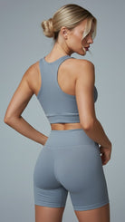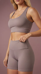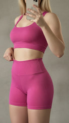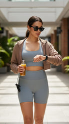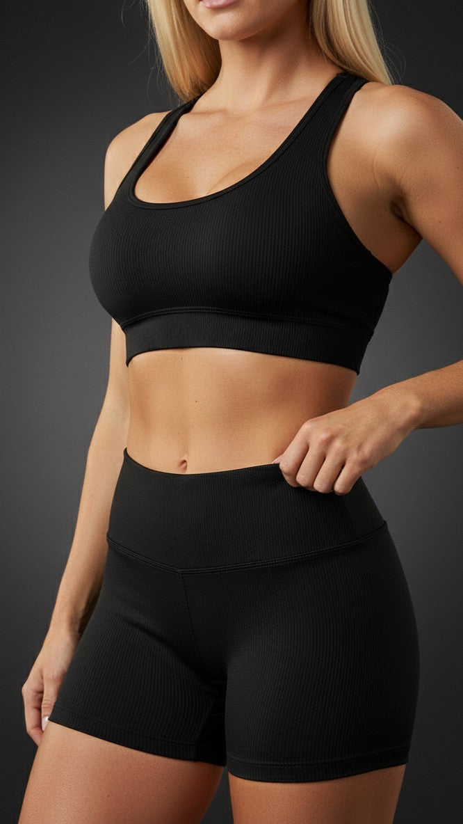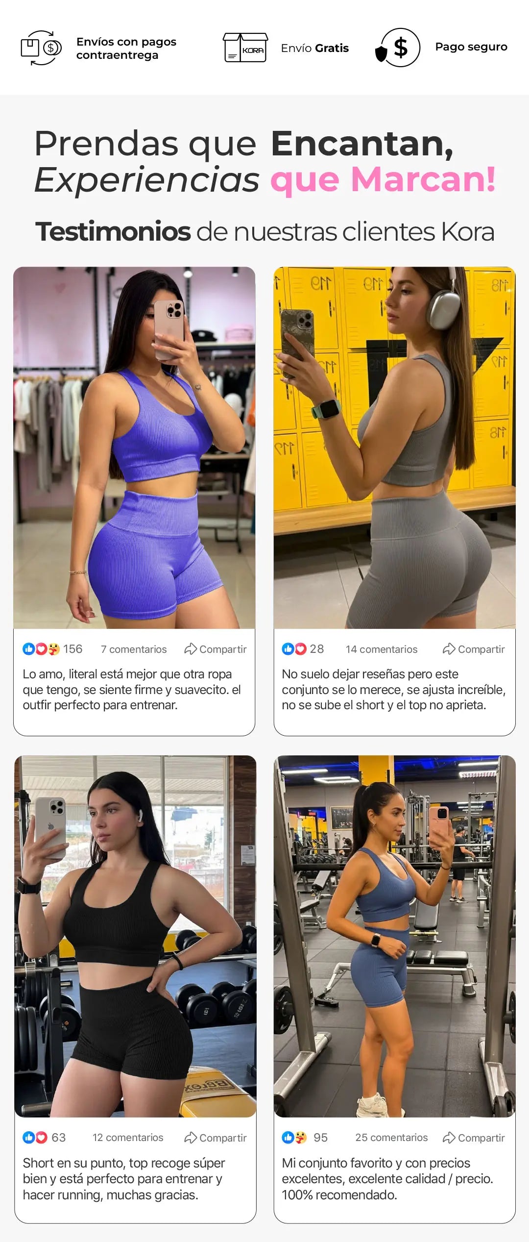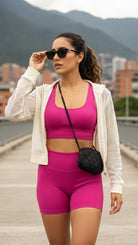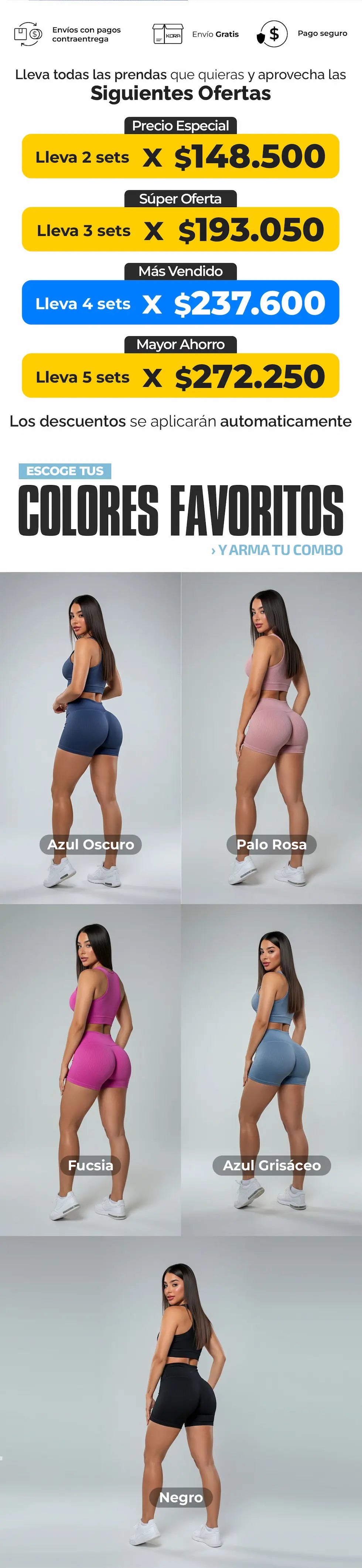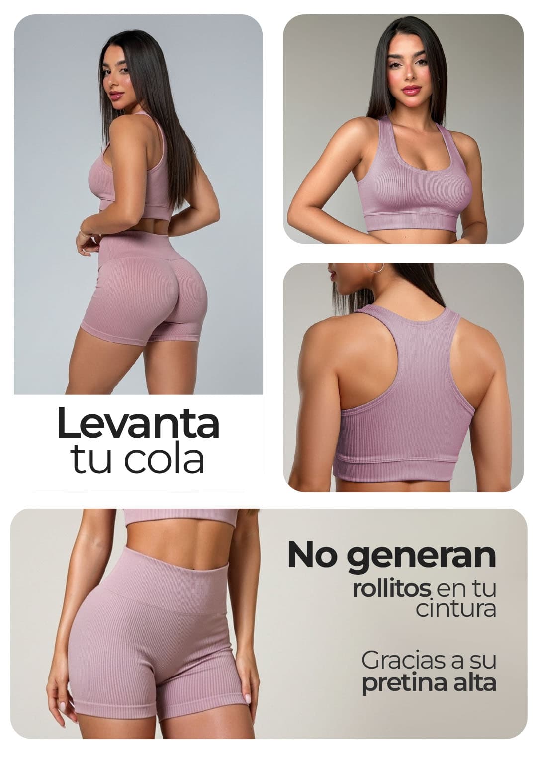 El Set Aurora es la pieza minimalista, estructurada y moderna que tu rutina exige. Confeccionado en Jacquard DP de 390g , el set ofrece una compresión media-alta que moldea y define la figura con precisión. Su top de escote cuadrado brinda soporte firme, y el short de tiro alto con pretina ancha asegura máxima estabilidad. Es tu esencial para el gimnasio, yoga o athleisure.