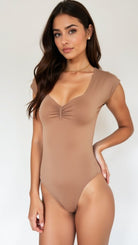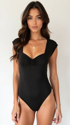 El Body Venus de Kora, confeccionado en licra premium (87% poliéster, 13% elastano) de doble capa frontal, ofrece un ajuste entallado y una sensación de segunda piel. Su diseño minimalista y femenino presenta un escote corazón con un fruncido vertical central que realza y define el busto, mangas cortas tipo 'cap sleeve' y un corte de pierna alto. La doble capa frontal evita transparencias, mientras que la elasticidad y suavidad del tejido garantizan comodidad y libertad de movimiento. Un cierre de broche de tres posiciones en la entrepierna añade funcionalidad discreta, haciendo de esta prenda una base versátil para looks casuales o elegantes.