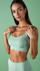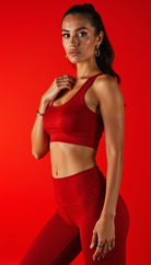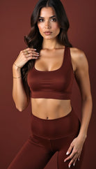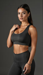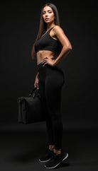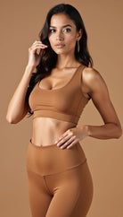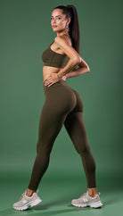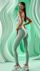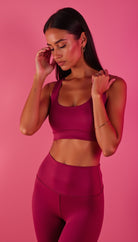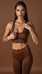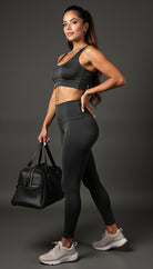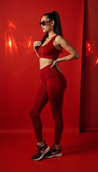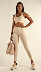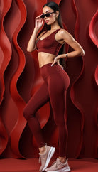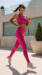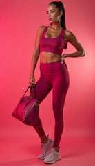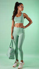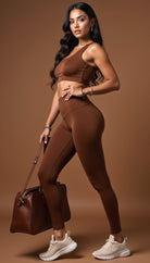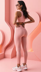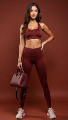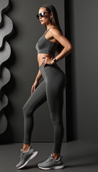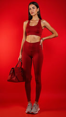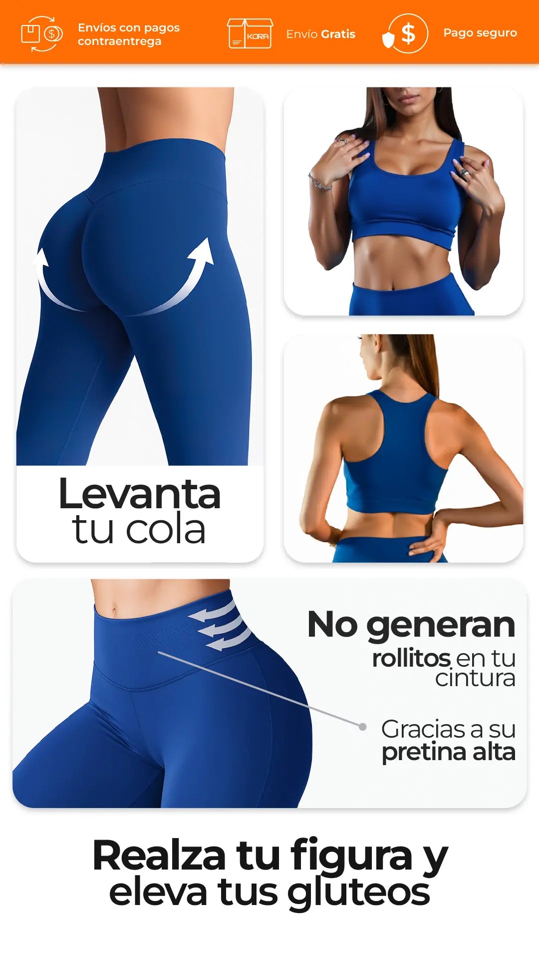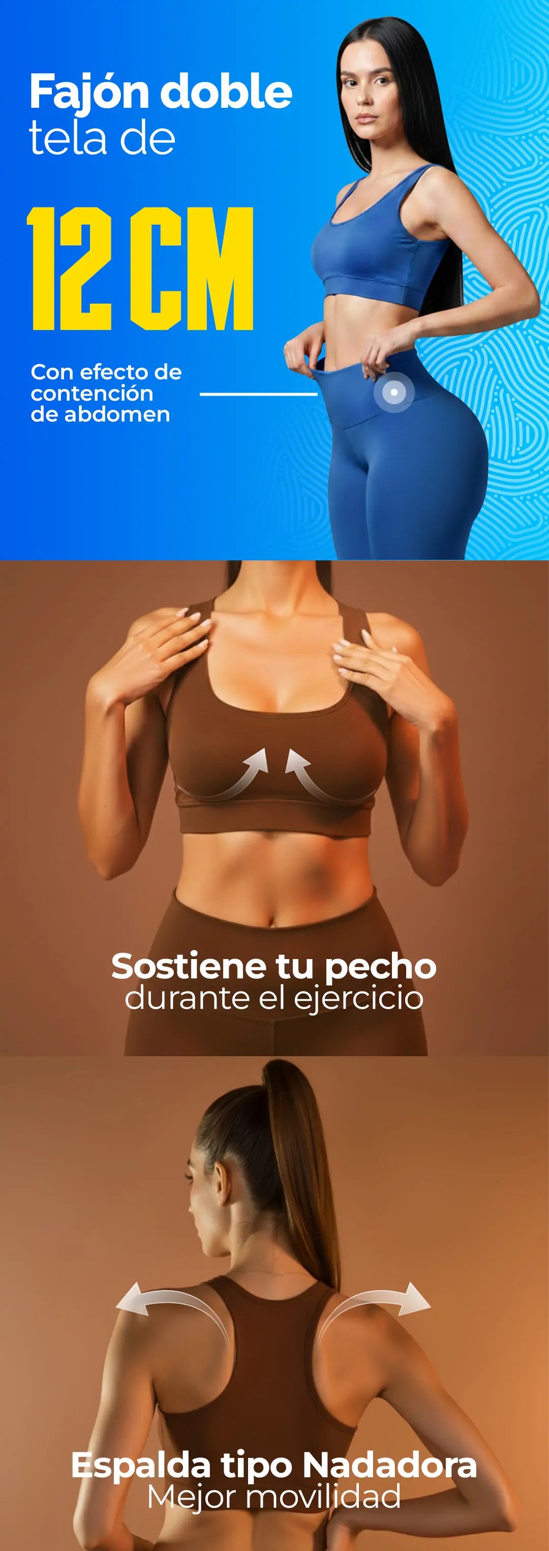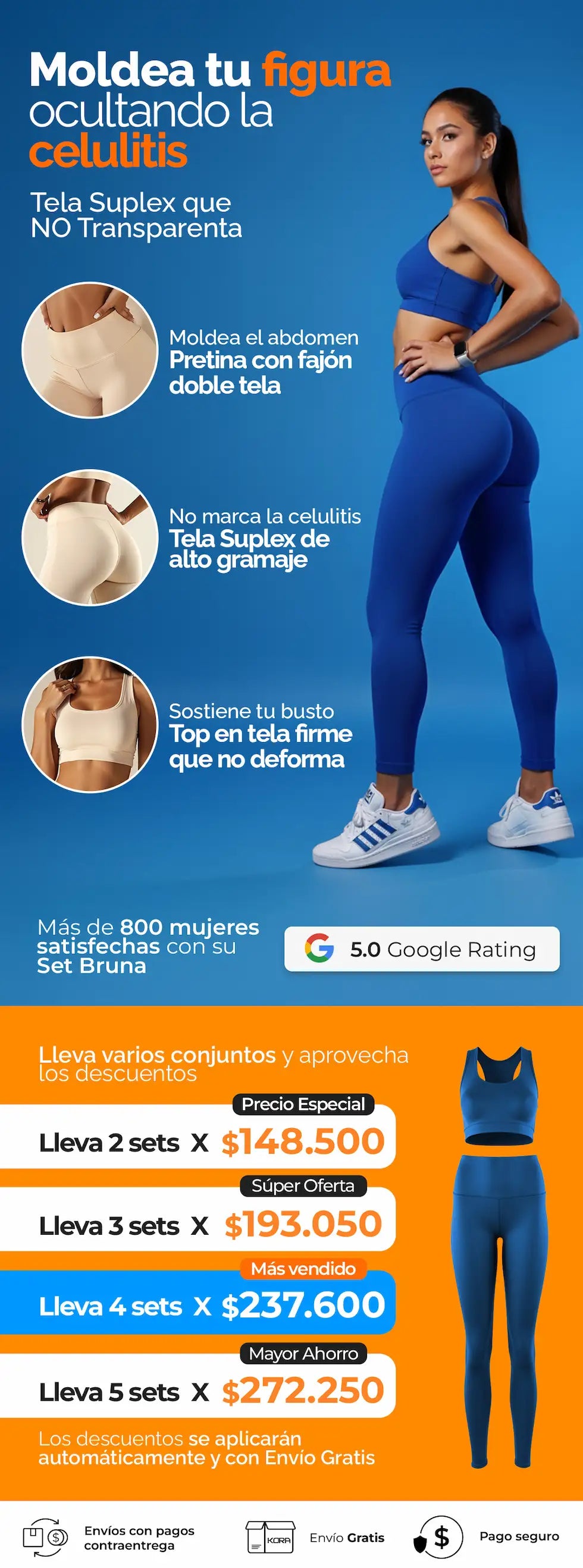 El Set Bruna es un conjunto deportivo de alto rendimiento con un ajuste ceñido que se adapta como una segunda piel. Confeccionado en tela Suplex de 390 g/m² (80% poliéster, 20% spandex), el tejido garantiza una opacidad total, incluso en estiramientos profundos. Los leggings tienen tiro alto con pretina extra ancha para control abdominal suave y una costura de realce en los glúteos. El top corto, con escote redondeado y espalda nadadora, ofrece sujeción media. Juntos, crean una silueta esculpida y segura, ideal para yoga, gimnasio o athleisure.